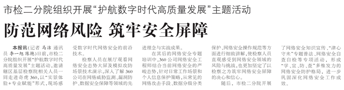 【天津政法报】市检二分院组织开展“护航数字时代高质量发展”主题活动