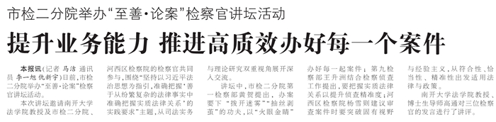 【天津政法报】市检二分院举办“至善 论案”检察官讲坛活动 提升业务能力 推进高质效办好每一个案件