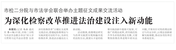 【天津政法报】市检二分院与市法学会联合举办主题征文成果交流活动