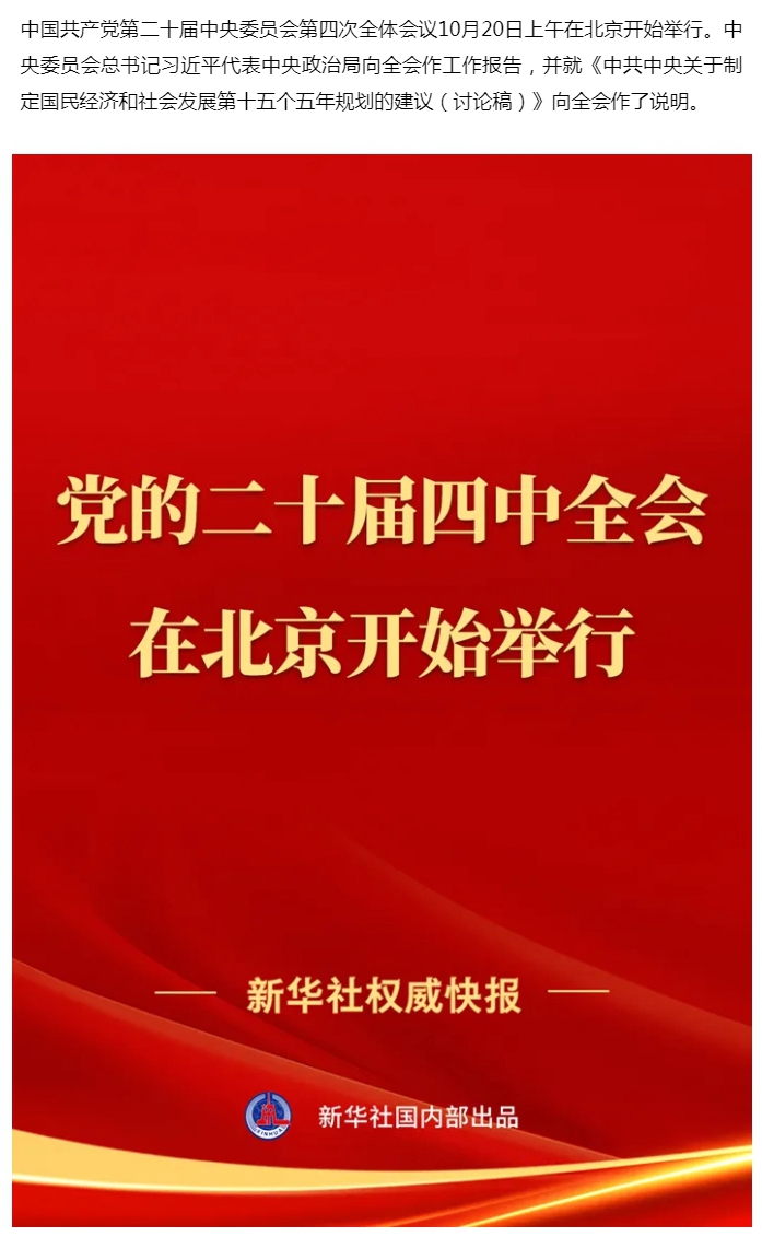 中国共产党第二十届中央委员会第四次全体会议在北京开始举行