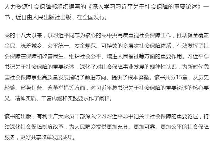 《深入学习习近平关于社会保障的重要论述》出版发行