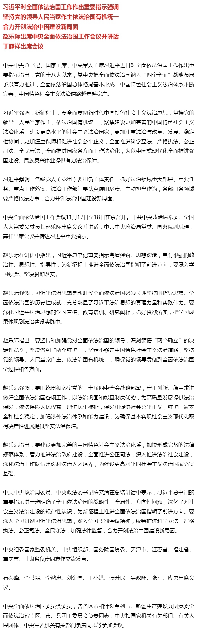 习近平对全面依法治国工作作出重要指示