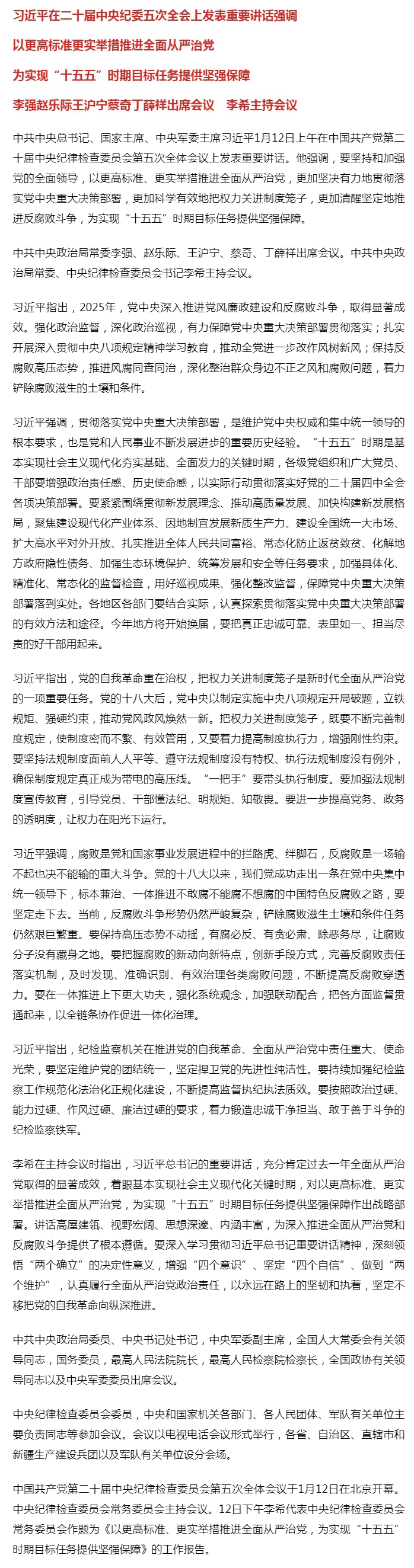 习近平在二十届中央纪委五次全会上发表重要讲话