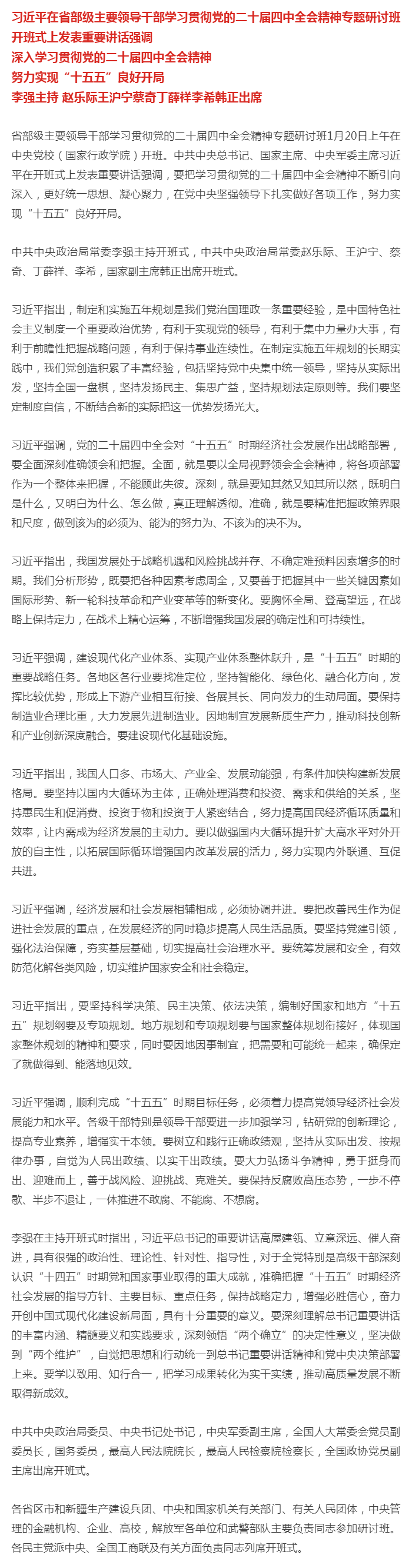 习近平在省部级主要领导干部专题研讨班开班式上发表重要讲话